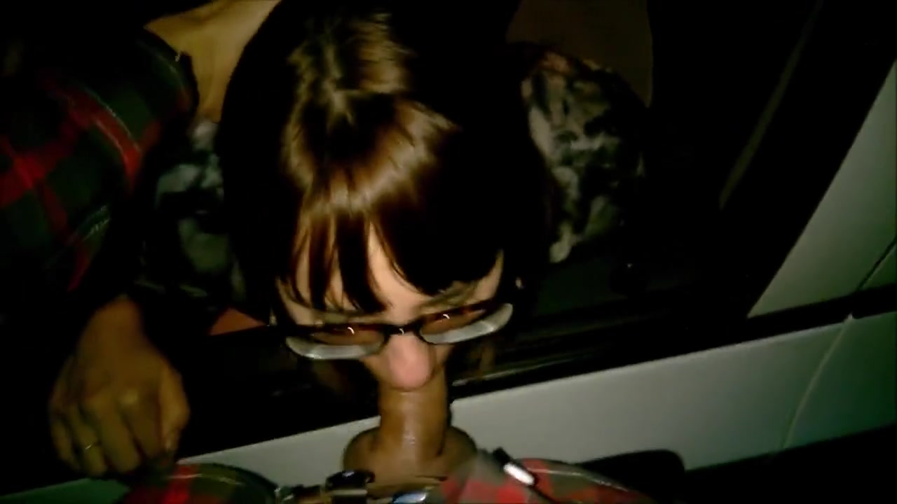 Симпатичная телочка в очках сидит в машине и поправляет прическу, даже не замечая как к ней подходит незнакомец в клетчатой рубашке и достает свой член. Схватив владелицу автомобиля рукой за голову, чувак заставил ей встать в рот вставший хер и делать минет. Очкастая сучка сопротивлялась и пыталась перестать делать минет, но все же делала это недостаточно сильно, так как ей самой нравилась сложившаяся ситуация. Когда девка хорошо поработала ртом, крендель кончил ей на мордашку и на немного на язычок, а потом ушел по своим делам.